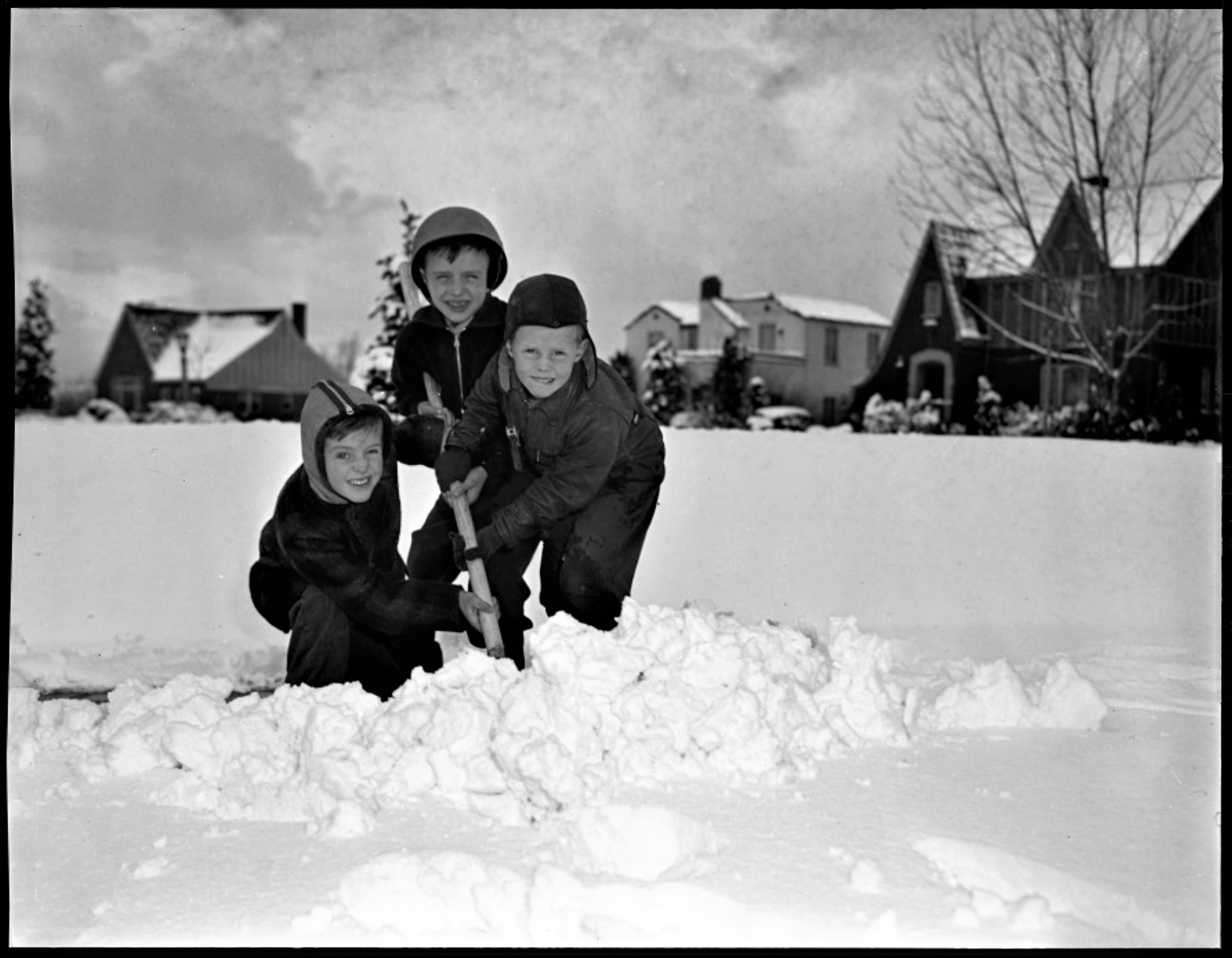 Children Clearing a Pathway on Military Drive After a January 1944 Snowstorm